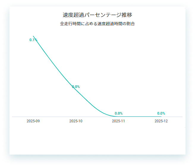 速度超過パーセンテージ推移 全走行時間に占める速度超過時間の割合の推移を表示します。 |