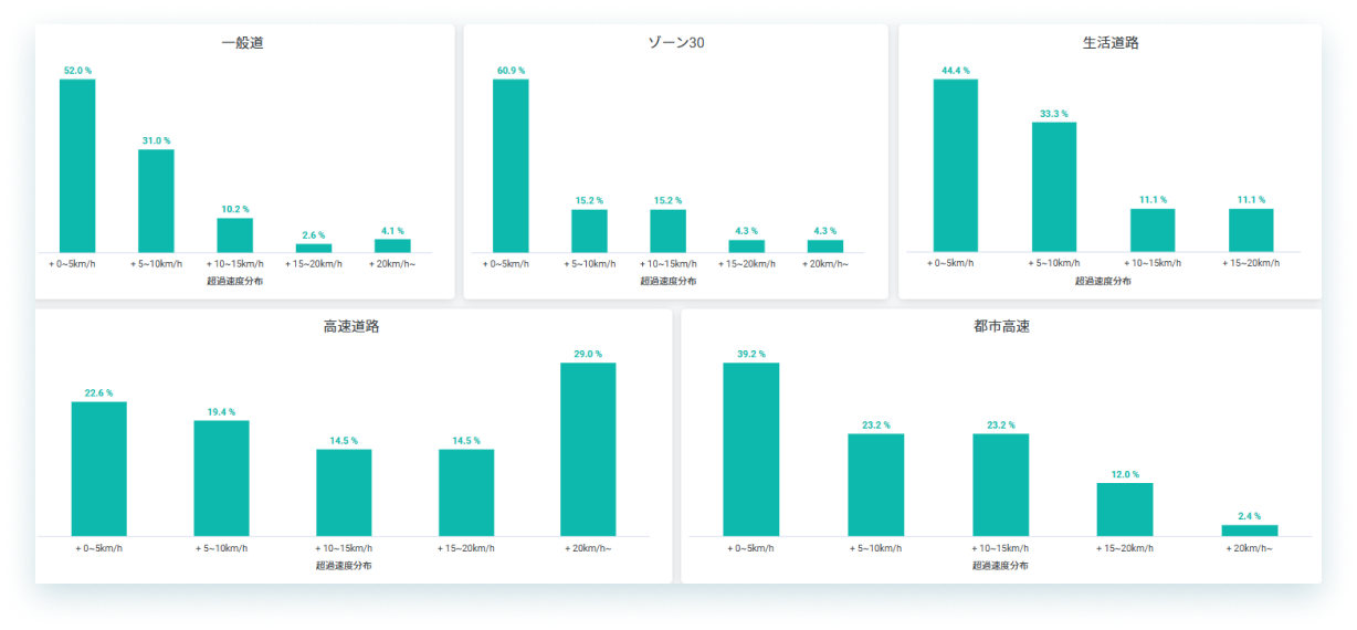 道路カテゴリごとに超過速度の分布を表示します。 |